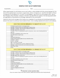 Monthly First Aid Inspection